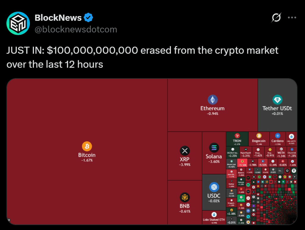 3 Reasons Crypto Is Dumping Today: $100 Billion Erased in 12 Hours