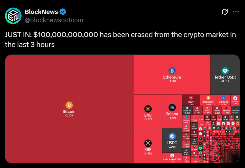 When crypto crashes, it’s rarely because of just one thing. It’s usually a storm of overlapping factors that all hit at once — and that’s exactly what’s happening today. The market is dealing with murky macro signals, geopolitical tension, and structural pressure from inside the trading system itself. Here’s a breakdown of what’s dragging everything down (and what to watch next).