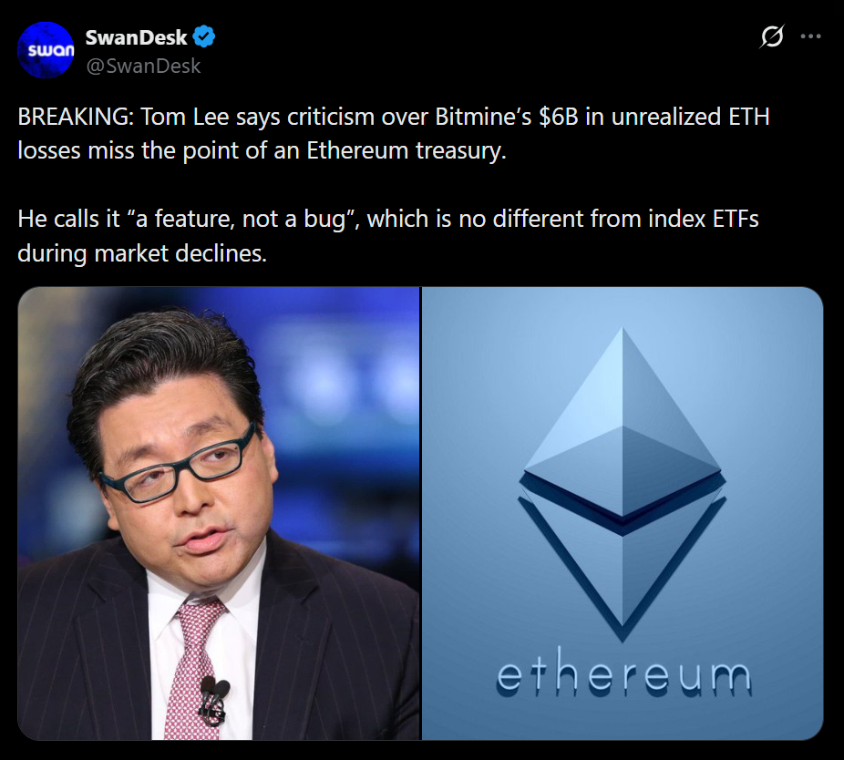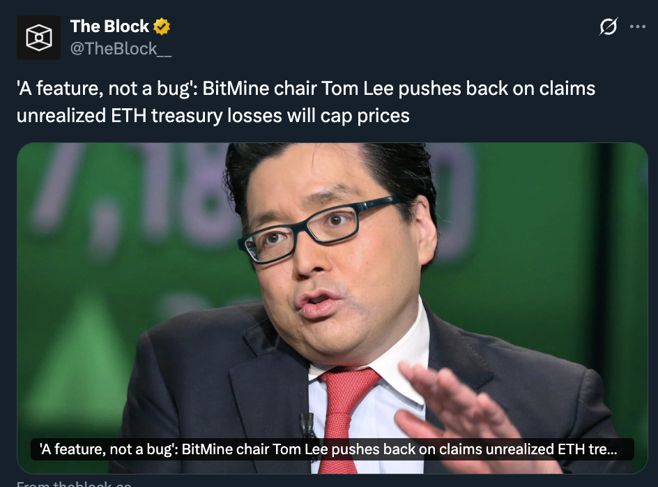 A Feature, Not a Bug: Why BitMine’s Unrealized ETH Losses Aren’t Capping Ethereum’s Future
