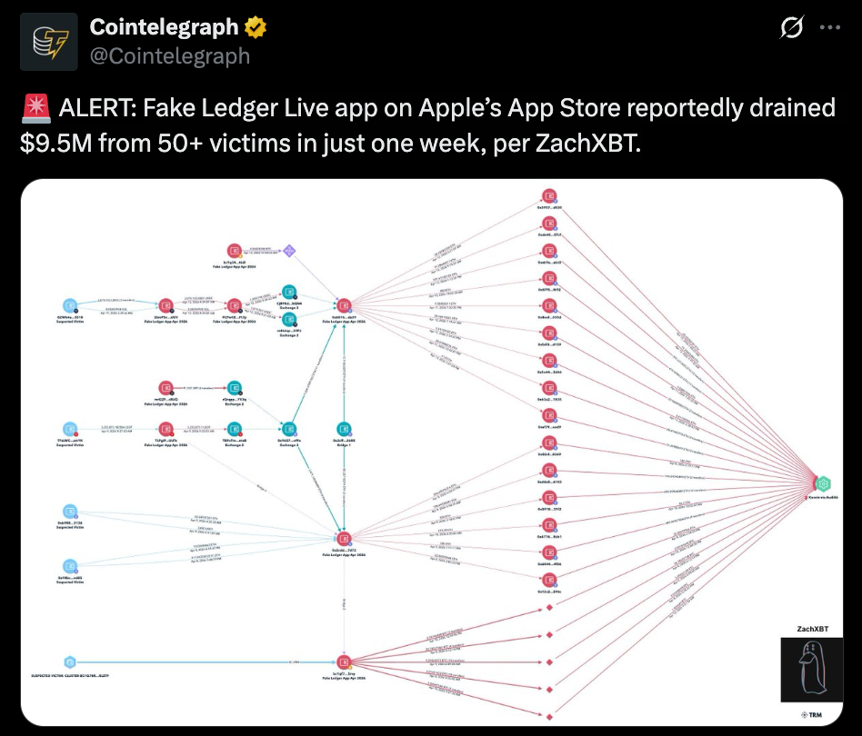 This one hits differently because it wasn’t some obscure phishing link or shady website. It was Apple’s App Store. Musician G. Love lost 5.92 BTC, essentially his retirement fund, after downloading what looked like a legitimate Ledger Live app on a new MacBook. Everything checked out on the surface, branding, interface, even the name.