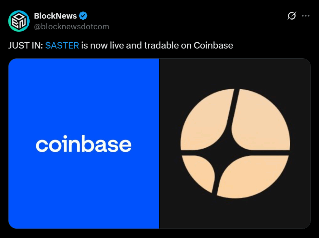 - Aster begins trading on Coinbase today under ASTER-USD, opening doors for U.S. liquidity.