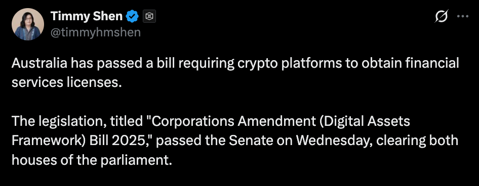 - Australia now requires crypto platforms to obtain financial licenses