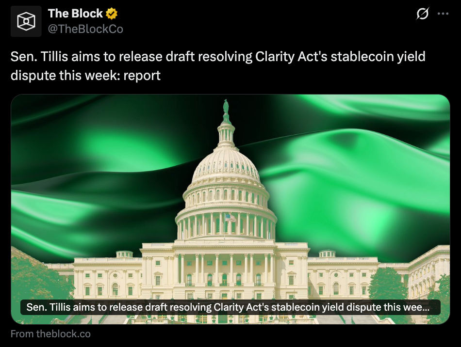 The biggest crypto bill in the U.S. is stuck again, and it’s not because of some obscure clause nobody understands. It’s a very direct fight between banks and crypto companies over one thing, yield. Senator Thom Tillis is now trying to push things forward with a new draft proposal, but even he’s leaving room for things to change, which probably tells you where this is headed.