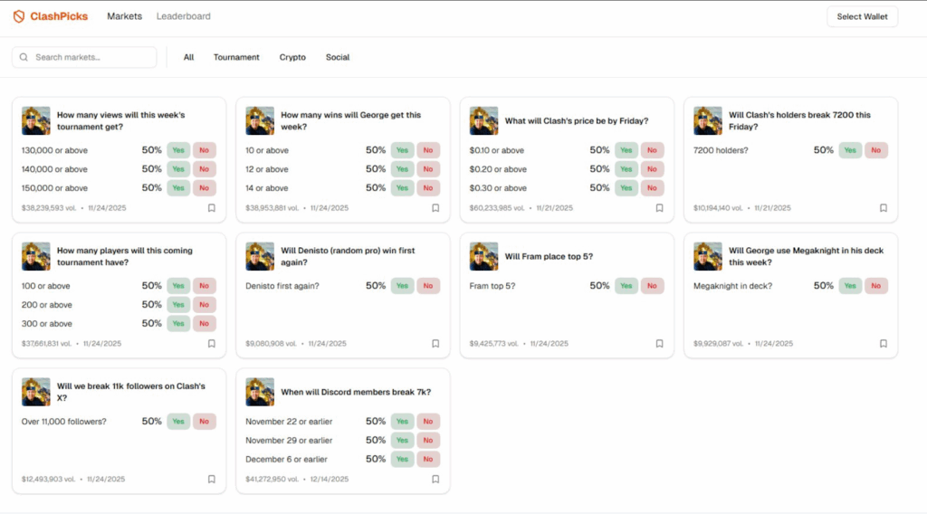ClashPicks will begin with tournament-focused predictions but aims to expand into world events, other crypto projects, and possibly sports.