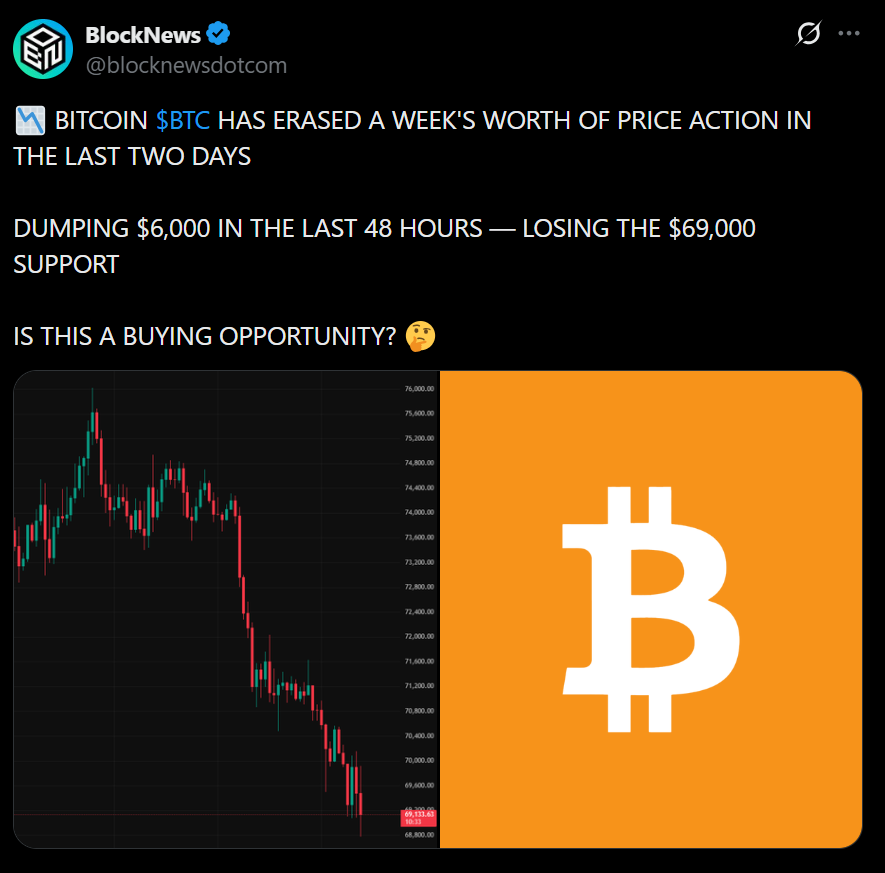 Bitcoin is feeling the pressure again, slipping to around $69,600 as broader macro forces start to weigh on crypto markets. The drop, modest on paper, comes as energy prices surge sharply, with Brent crude climbing to $114 and Oman crude reportedly pushing toward $150. That kind of move tends to ripple through global markets, and crypto, despite its independence narrative, still reacts to these shocks more than some expect.