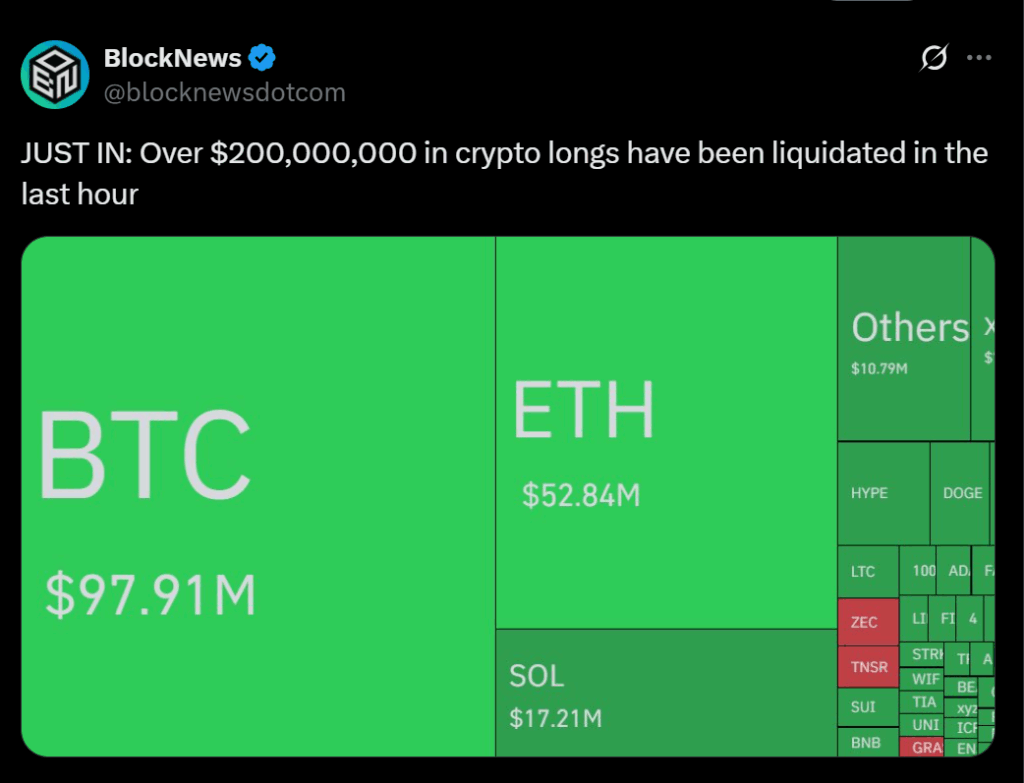 This marks the latest in a string of liquidation-driven declines throughout recent weeks. With volatility elevated and liquidity thinning, sudden drops continue to wipe out large chunks of leveraged open interest in minutes.