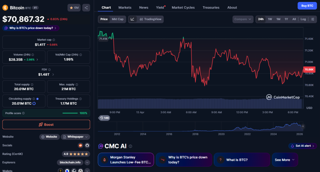 For now, the $70K level is doing its job. But with oil volatility, geopolitical tension, and shifting sentiment all in play, the next move could come quickly. Whether it’s a breakdown or a squeeze higher, this range probably won’t hold forever.