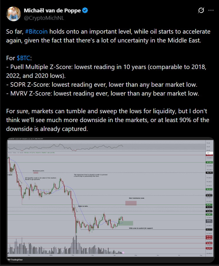 Despite the volatility, some analysts believe Bitcoin is still in a relatively strong position. Michael van de Poppe pointed out that BTC is holding what he considers an “important” level, even as macro conditions shift. He also noted that several on-chain indicators are at record lows, suggesting Bitcoin may already be undervalued.