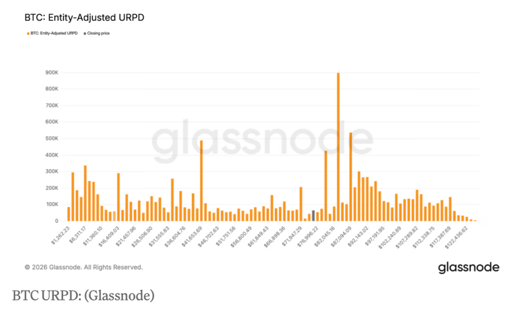 Data suggests there’s a real lack of established ownership between $70,000 and $80,000. Outside of one notable purchase by Strategy back in November 2024, there’s little evidence of large players building sustained exposure in this band. Trading activity here has been light, and that absence matters.