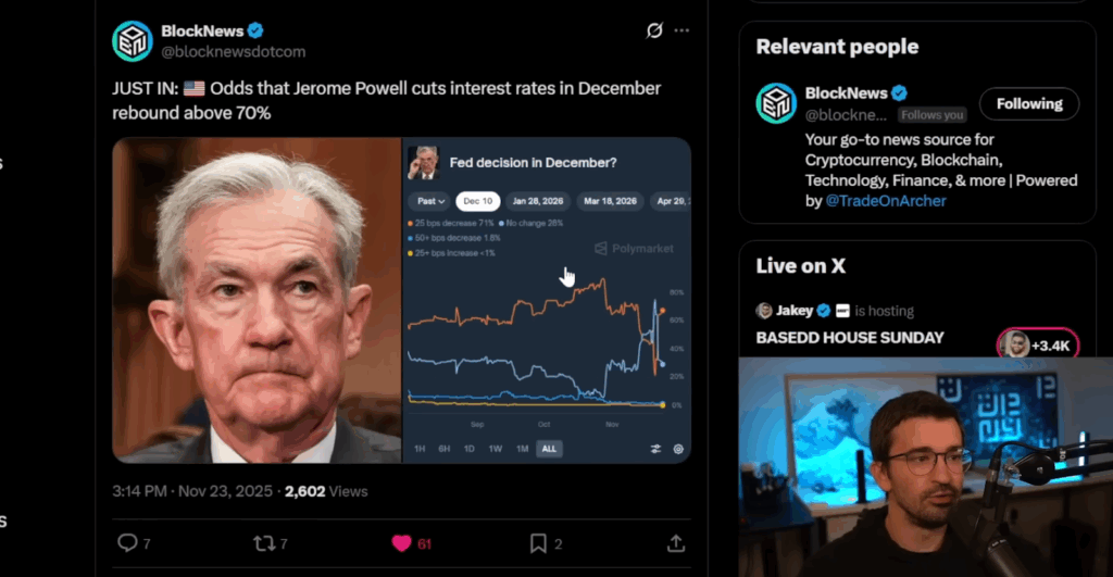 Bitcoin fear is extreme, predictions are unrealistic, and the truth lies in the middle. BTC looks oversold, strong catalysts are approaching, and regulation may bring unprecedented liquidity. He doesn’t expect a miraculous run to $200K in the next two months, but he does see a realistic path to 110K–120K if December plays out as expected.