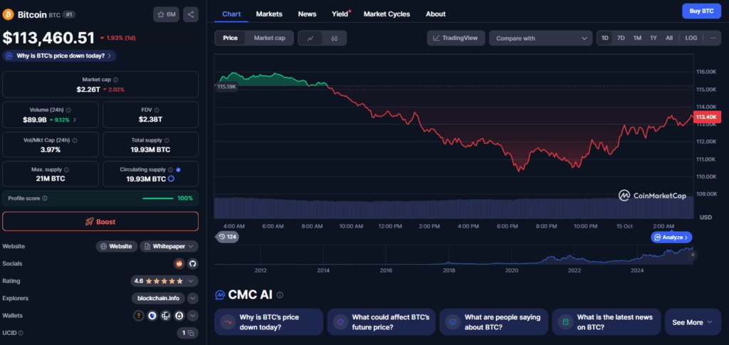 The crypto market saw a divergence on Tuesday as Bitcoin (BTC) cooled off from its recent highs while Solana (SOL) continued to show strength. According to CoinMarketCap, Bitcoin slipped 2.6% to $111,773, while Solana climbed 1.36% to $197, signaling that traders may be rotating capital into high-performing altcoins. Despite Bitcoin’s pullback, analysts say the move reflects a healthy correction rather than the start of a deeper downturn.