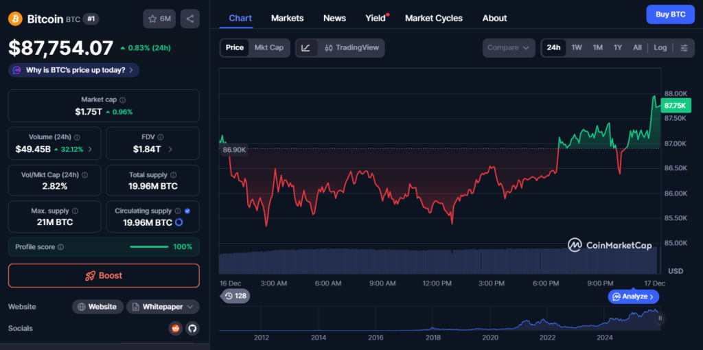 - Bitcoin rebounded above $87,000 after Monday’s sharp selloff, stabilizing crypto markets.