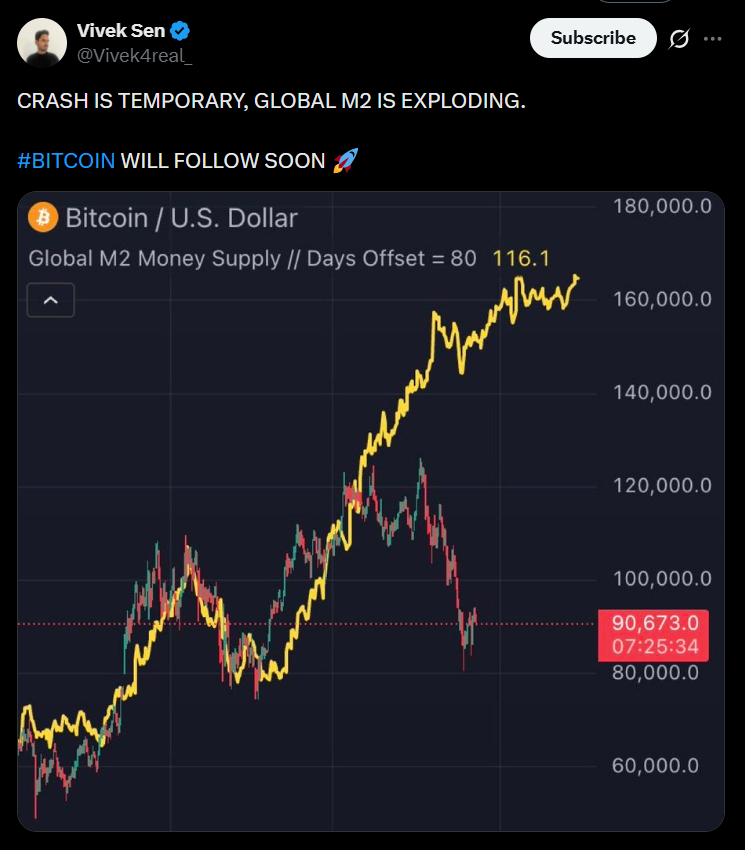 The key trigger remains simple. A breakout above the major bearish trendline may mark the end of Bitcoin’s downtrend, while a breakdown below the mini ascending channel would confirm weakness and expose deeper support near $80,000. For now, the bull case looks slightly more convincing. The medium-term MACD histogram is on the verge of flipping positive—a signal that often precedes renewed upside momentum. The dollar index has also weakened to its lowest level since October, and its own MACD has turned negative, typically a supportive backdrop for BTC.