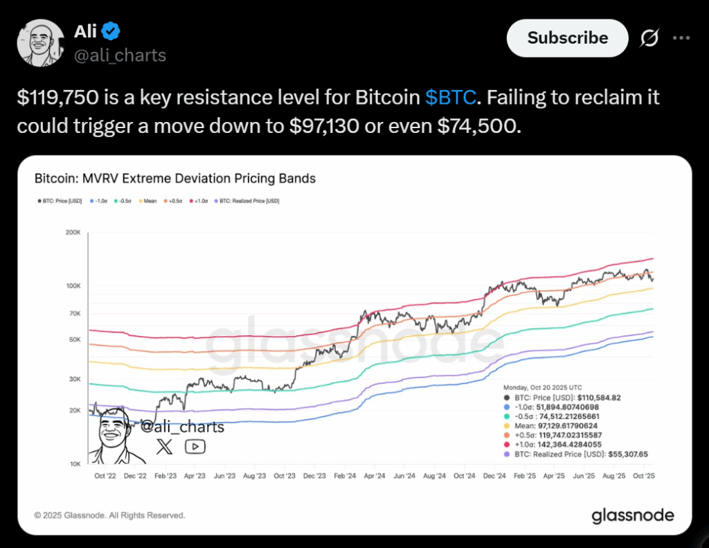 Bitcoin hovered near $108,000 on Wednesday morning, about 14% down from its October 6 all-time high, as Standard Chartered analysts warned that a dip below $100,000 is “inevitable.” Geoff Kendrick, the bank’s global head of digital assets research, said while the correction might shake out short-term traders, it could mark the final major buying chance before Bitcoin enters a new growth cycle.