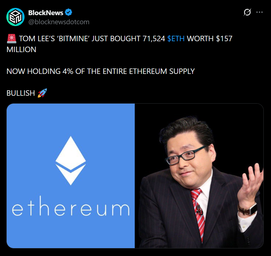 BitMine’s latest purchase reinforces one thing, the strategy hasn’t changed. Accumulate ETH, stake it, and scale the position over time. It’s simple in concept, but at this size, it becomes something much bigger.