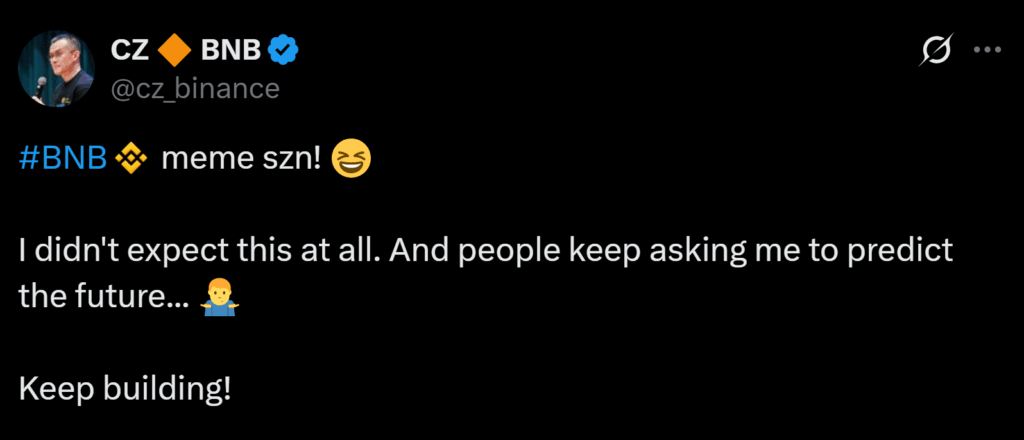 Tags: BlockchainBNBcryptoCZmemesTrading