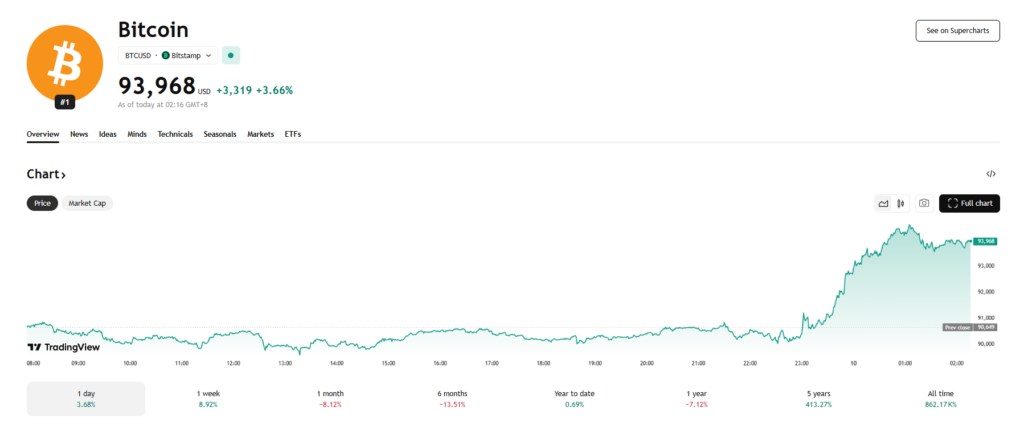 - A sustained hold above $94,000 could open a path toward the $100,000 zone.