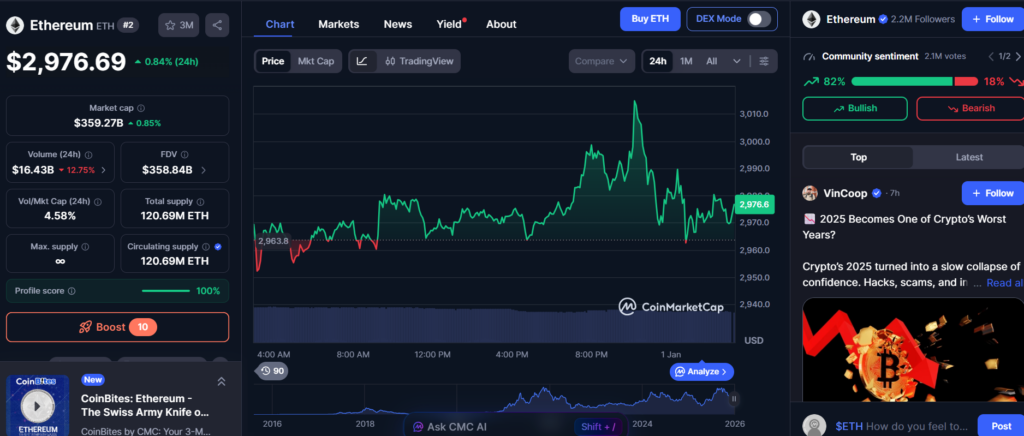 According to CoinGecko data, XRP currently ranks as the fifth-largest cryptocurrency, with a market capitalization of roughly $113 billion. Ethereum, by comparison, sits comfortably in second place with a valuation near $359 billion, almost three times larger than XRP’s. Closing that gap would require not only significant growth from XRP, but also a scenario where Ethereum’s expansion slows meaningfully.