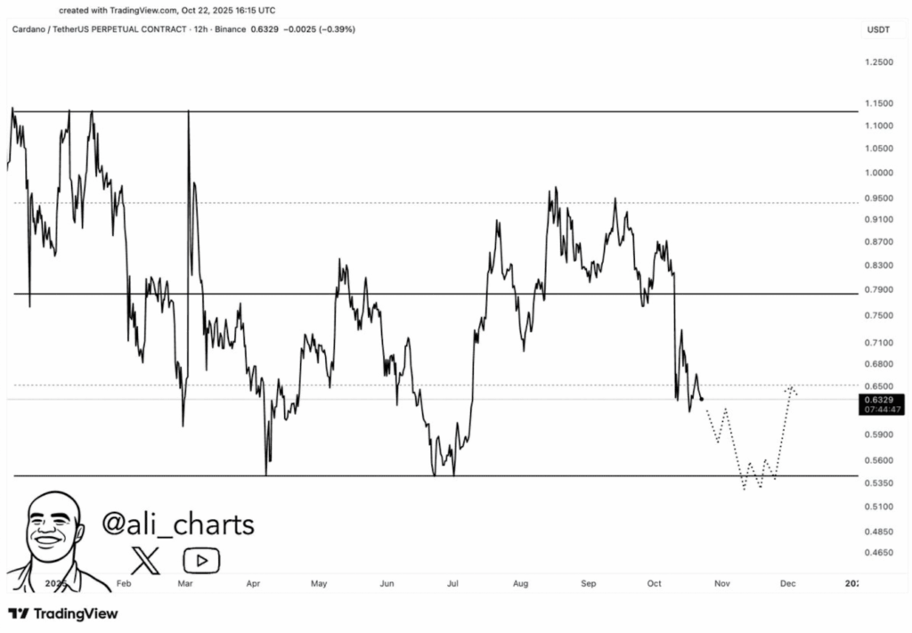 Heading into November, traders are once again zooming in on short-term structure. The $0.64 area remains the key battleground — if ADA can form a clear pattern of higher lows on the 12-hour chart, it might signal that sellers are finally losing strength.