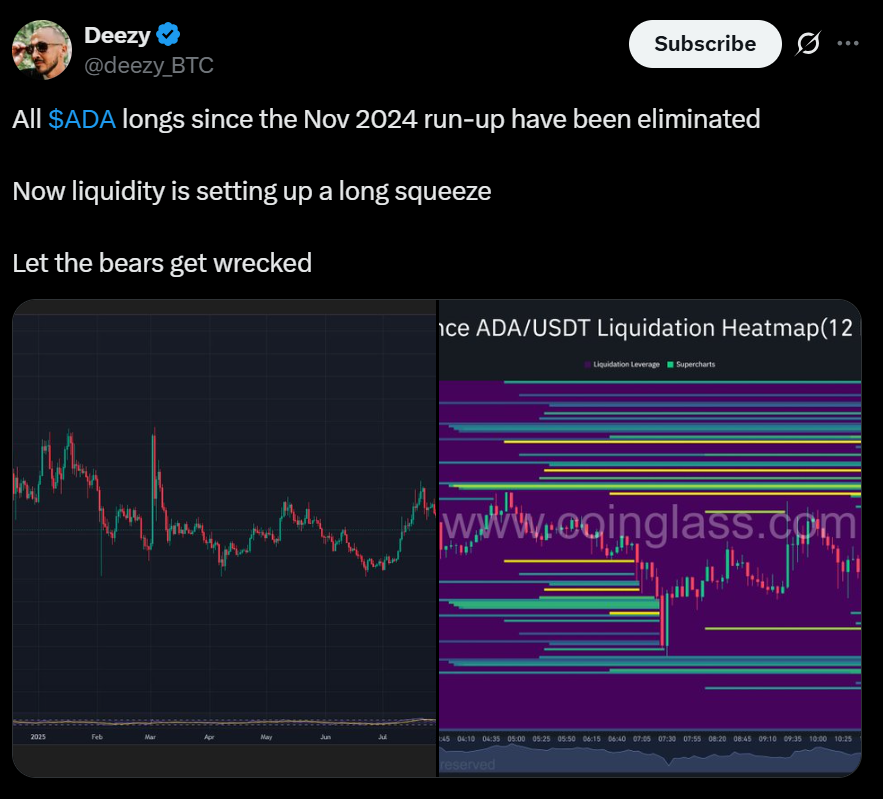 Data from TapTools reveals that more than $62 million in leveraged ADA positions sit near the $0.81 level, making it a key liquidity zone. If price moves higher, these positions could be liquidated, leading to a short squeeze and amplifying ADA’s upside momentum.