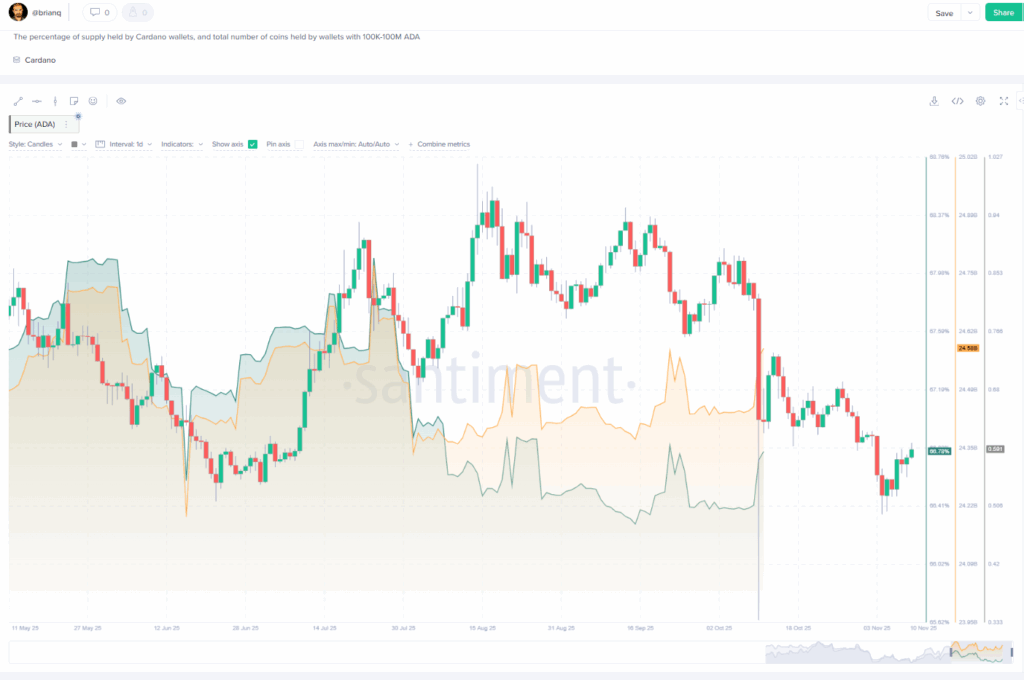 On-chain tools like Santiment’s ADA 100k–100m wallet chart make it easier to see where “smart money” is leaning. Right now, that lean is clearly toward accumulation, not exit. If the broader market stabilizes and liquidity rotates back into alts, this kind of positioning can become the fuel for stronger moves later on.