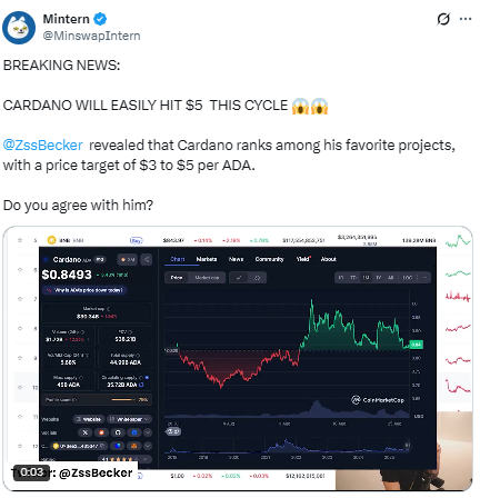 Crypto analyst Sssebi believes ADA could easily hit $3 by the end of this market cycle, pointing to strengthening fundamentals and renewed investor confidence.