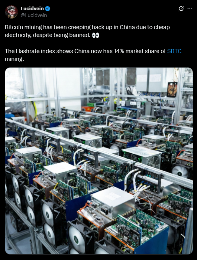- China has quietly re-emerged as the third-largest Bitcoin mining hub, capturing 14% of global hashrate.