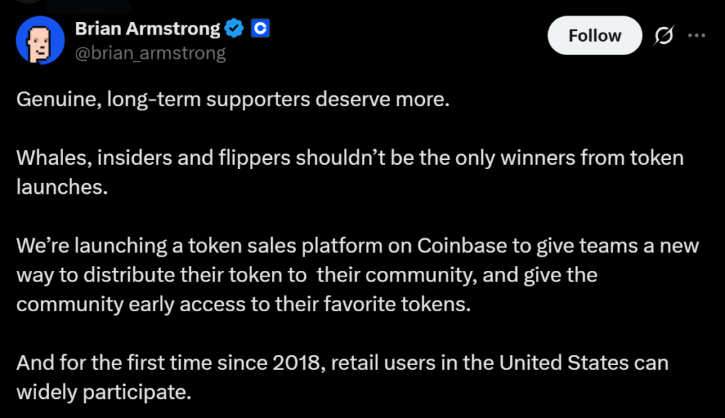 This new approach represents an attempt to reboot public token sales, but with automation, stricter guardrails, and a higher bar for listing. By combining algorithmic allocation, USDC-based settlement, and enforced lockups, Coinbase is trying to capture the upside of public access while minimizing the worst excesses of the old ICO era.