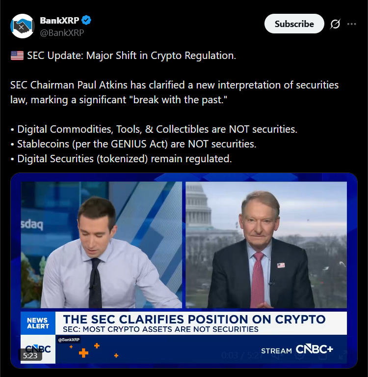 Now, with regulators signaling that many major assets fall under a commodity-style framework, that uncertainty is beginning to lift. It’s not perfect clarity, but it’s enough to shift behavior. Instead of interpreting rules case by case, firms can start operating within more consistent guidelines, which changes how quickly things can move.