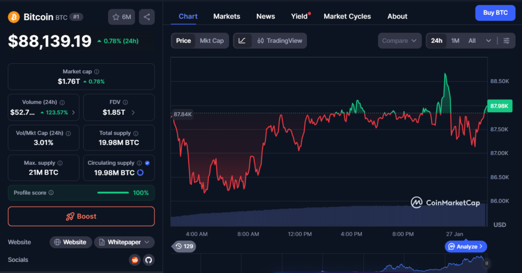 Bitcoin has had a rough opening to 2026, hovering around the $87,000–$88,000 range after briefly dipping to a new yearly low near $86,000. That weakness has weighed on broader crypto sentiment, leaving both digital assets and crypto-focused U.S. stocks under pressure. Analysts note that capital has rotated toward gold and other defensive assets, pushing crypto further down the priority list for many investors.