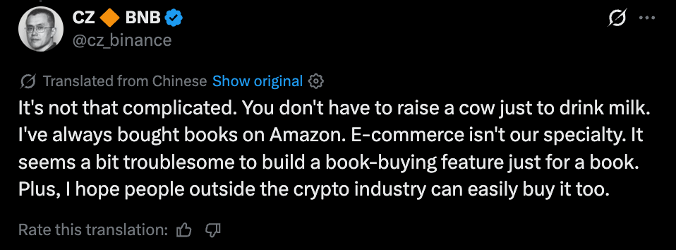 CZ’s reasoning was simple, almost annoyingly so. Building custom infrastructure for a single book doesn’t make sense when existing platforms already solve the problem.