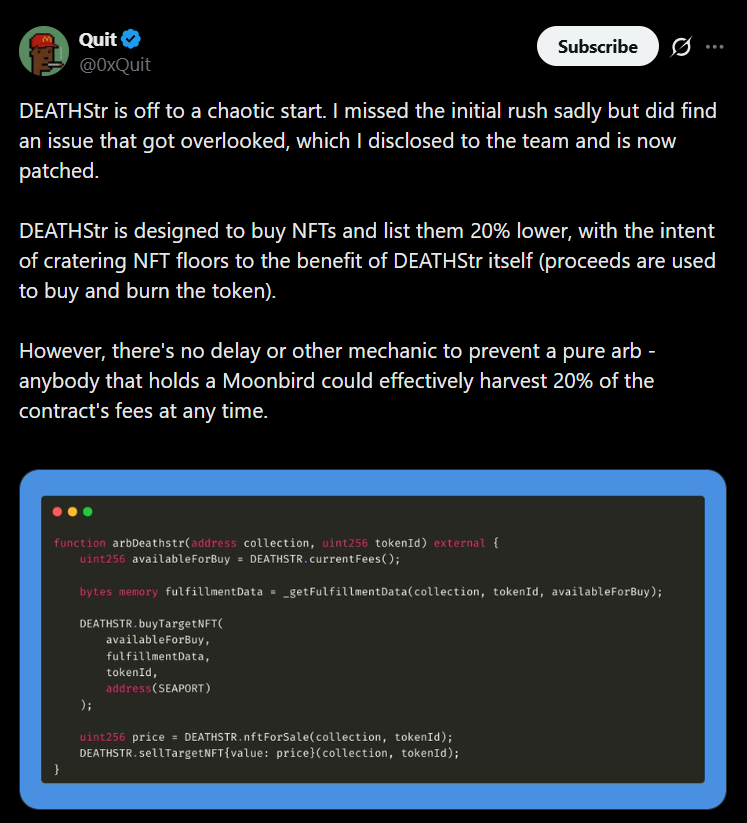 A 10x move from a low single-digit million market cap puts DEATHSTR in the mid-eight-figure range. That valuation sits comfortably within the bounds of other established NFT strategy tokens, not in some absurd outlier territory. It doesn’t require category domination, just meaningful share within a niche that already supports similar valuations.