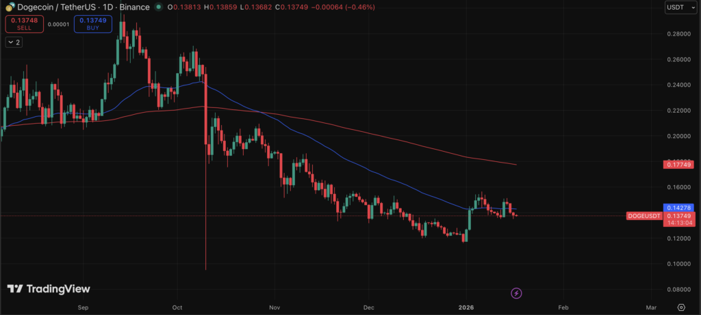 DOGE climbed roughly 8% on January 13, briefly pushing toward the $0.15 level. The timing lined up almost perfectly with the release of a 278-page Senate draft crypto bill, which builds on the Clarity Act passed by the House last year. The goal of the bill is to finally sort digital assets into clearer regulatory buckets, something the industry has been waiting on for years.