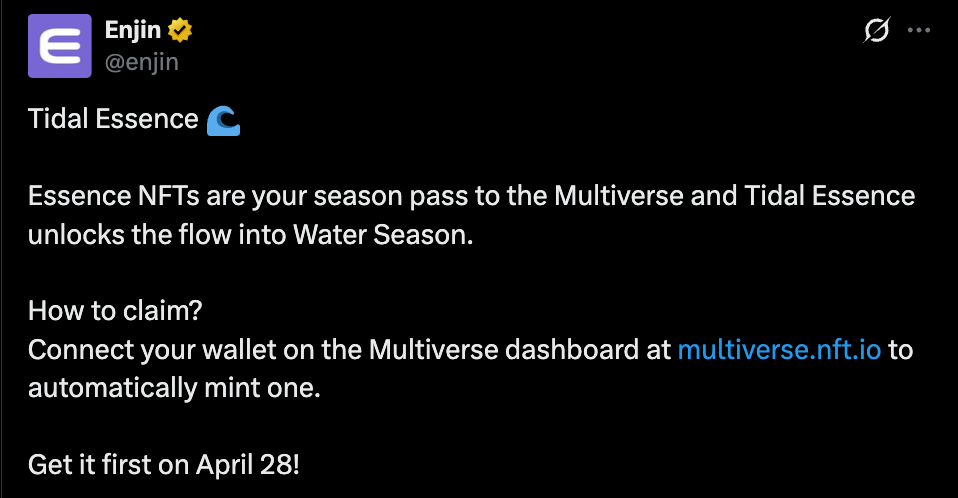 - Tidal Essence NFT unlocks Enjin’s Multiverse Water Season