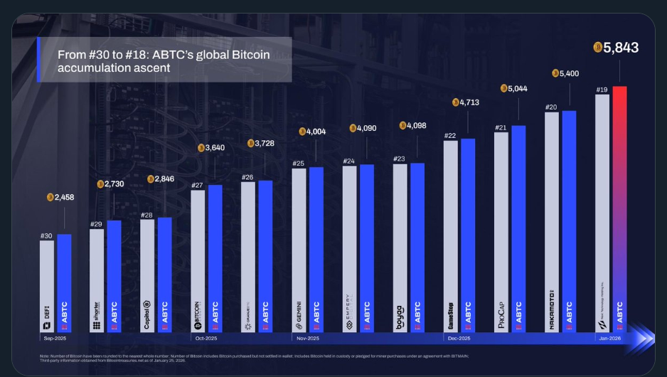 • American Bitcoin jumped from #30 to #18 in global corporate Bitcoin holdings in under five months