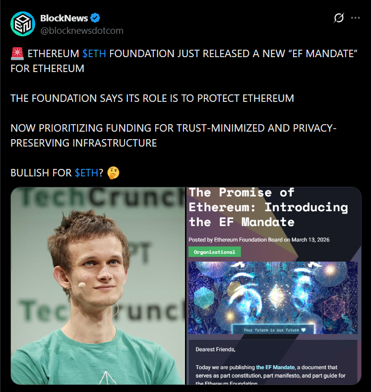 - Ethereum Foundation publishes a 38-page mandate outlining its long-term role