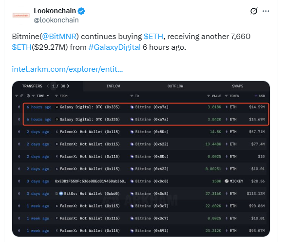 While short-term traders hesitated, institutional player Bitmine saw opportunity in the recent dip. According to Lookonchain data, the firm scooped up 44,036 ETH — roughly $166 million worth — during the pullback. That move boosted Bitmine’s total holdings to 3.16 million ETH, valued at around $12.15 billion. This type of accumulation during weakness reinforces how institutions tend to buy the fear, not the top. It’s a strong signal that big money continues to treat Ethereum as a long-term play despite short-term volatility.