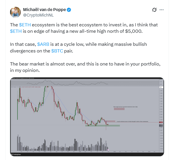 - Analyst Michaël van de Poppe predicts ETH could break above $5,000 once it reclaims the $4,000 level.
