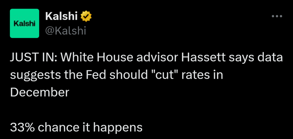 - December rate-cut odds collapse from 97% to ~22% after strong September jobs report.