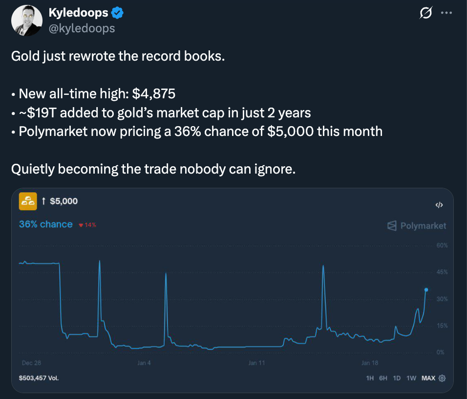 Gold isn’t trading on momentum or positioning. It’s reacting to fear. Trade disputes, geopolitical tension, policy uncertainty — this is gold’s natural environment. When institutions want preservation over performance, gold becomes the default. There’s no onboarding curve, no leverage unwind, no timing risk. You buy it, hold it, and let anxiety do the rest.
