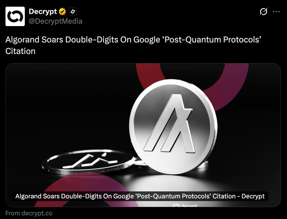 • Algorand jumped over 40% after mention in Google research