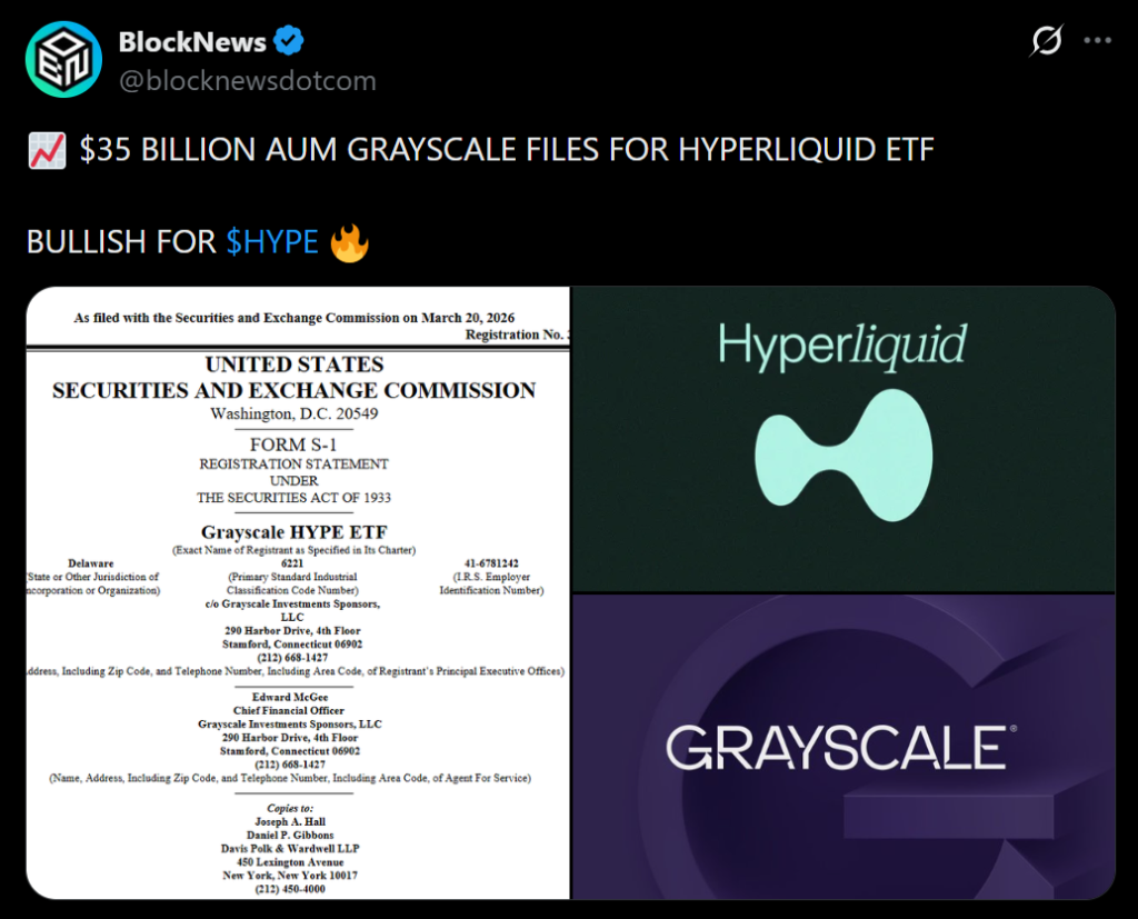 - Grayscale files for HYPE ETF tracking Hyperliquid token