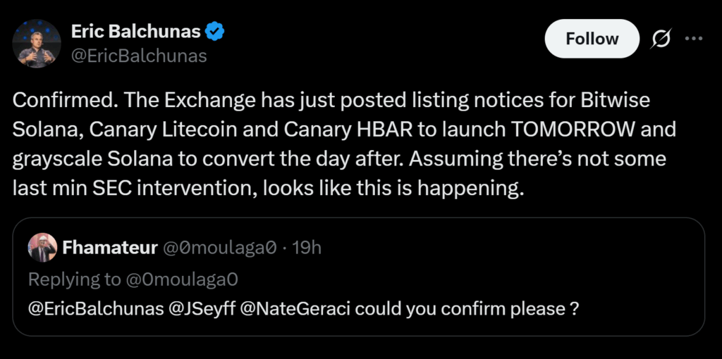 The rally gained traction after Bloomberg ETF analyst Eric Balchunas confirmed the ETF’s launch on X (formerly Twitter), sparking widespread interest among retail and institutional traders alike. Market participants see this as a milestone for Hedera, potentially opening the door for mainstream inflows and long-term legitimacy. The new ETF will make it easier for traditional investors to gain exposure to HBAR, a factor that often boosts liquidity and price momentum in the short term.