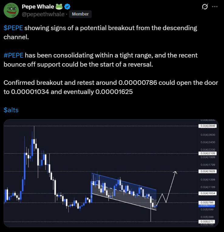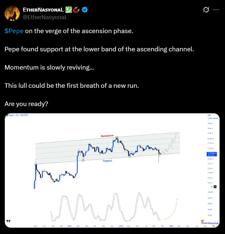 While PEPE remains technically in a bearish consolidation, the late-session reversal shows that buyers are still active near support zones. If accumulation continues and price holds above $0.00000720, analysts see room for a recovery toward $0.00000740 or higher. For now, sentiment around PEPE appears neutral-to-cautiously-bullish, with no signs of major outflows — a reminder that even in a pullback, the memecoin crowd is far from giving up.