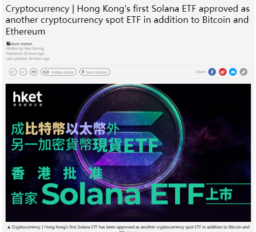 Hong Kong just made a major move — officially approving its first-ever Solana spot ETF. The Hong Kong Securities and Futures Commission (SFC) granted ChinaAMC the go-ahead to launch the product, marking a big milestone for both Solana and Asia’s growing role in the crypto ETF scene. According to the Hong Kong Economic Times, the ETF will be tradable in both USD and RMB, with each unit consisting of 100 shares and a minimum investment of around $100. Launch day? October 27 on the Hong Kong Stock Exchange.
