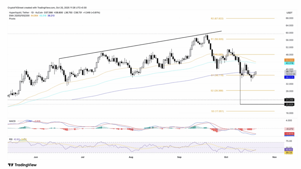 On the downside, losing support at $38 could drag HYPE back toward $28, the next key pivot zone. For now, though, the trend looks cautiously optimistic — with technicals hinting that the worst might be over, at least for now.