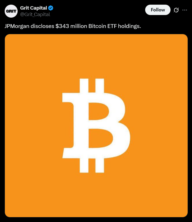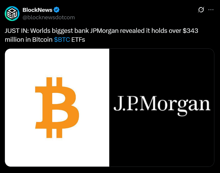 - JPMorgan holds 5.3M shares of BlackRock’s Bitcoin ETF, valued at $343M as of Sept. 30.