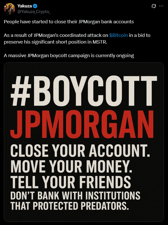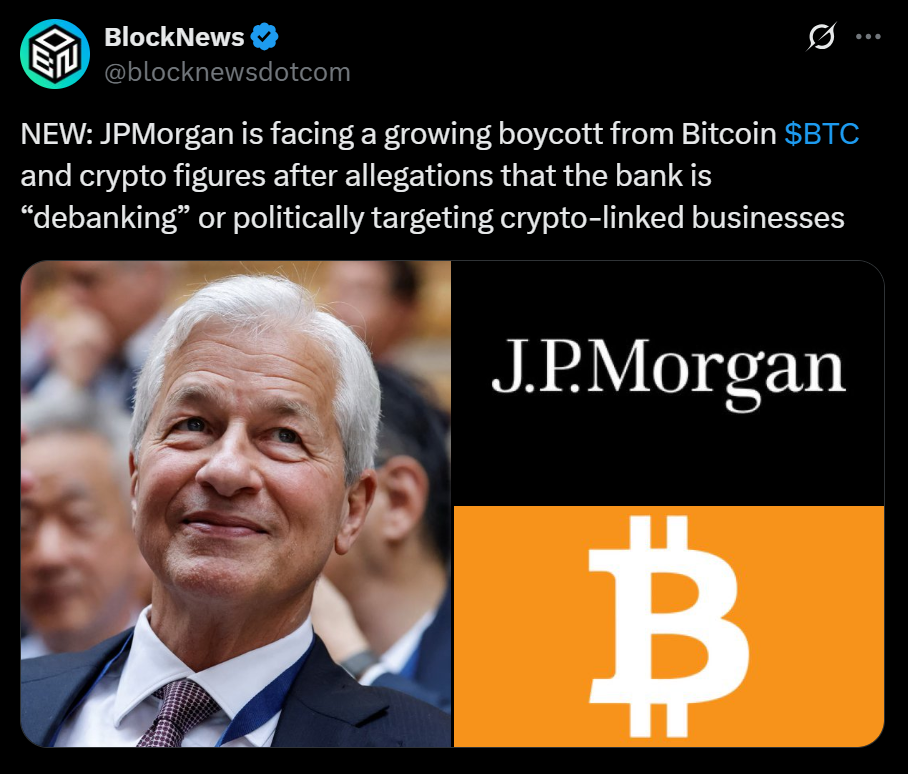 JPMorgan Faces Furious Crypto Boycott Over Bitcoin Debanking Claims