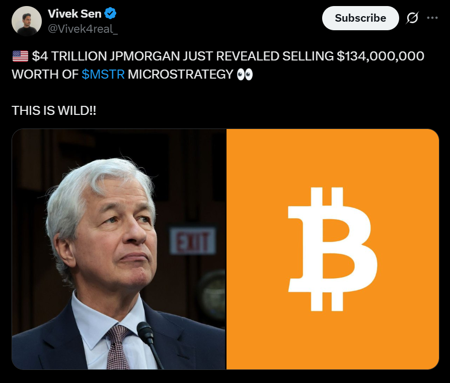 - JPMorgan sold $134M in MicroStrategy stock, sparking debate about institutional Bitcoin exposure.