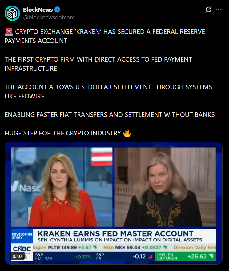 In practical terms, this means Kraken can hold reserves and settle transactions in central bank money. Until now, crypto firms had to rely on intermediary banks to access the financial system’s core settlement rails. Removing those middle layers changes how efficiently funds can move between crypto markets and traditional finance.
